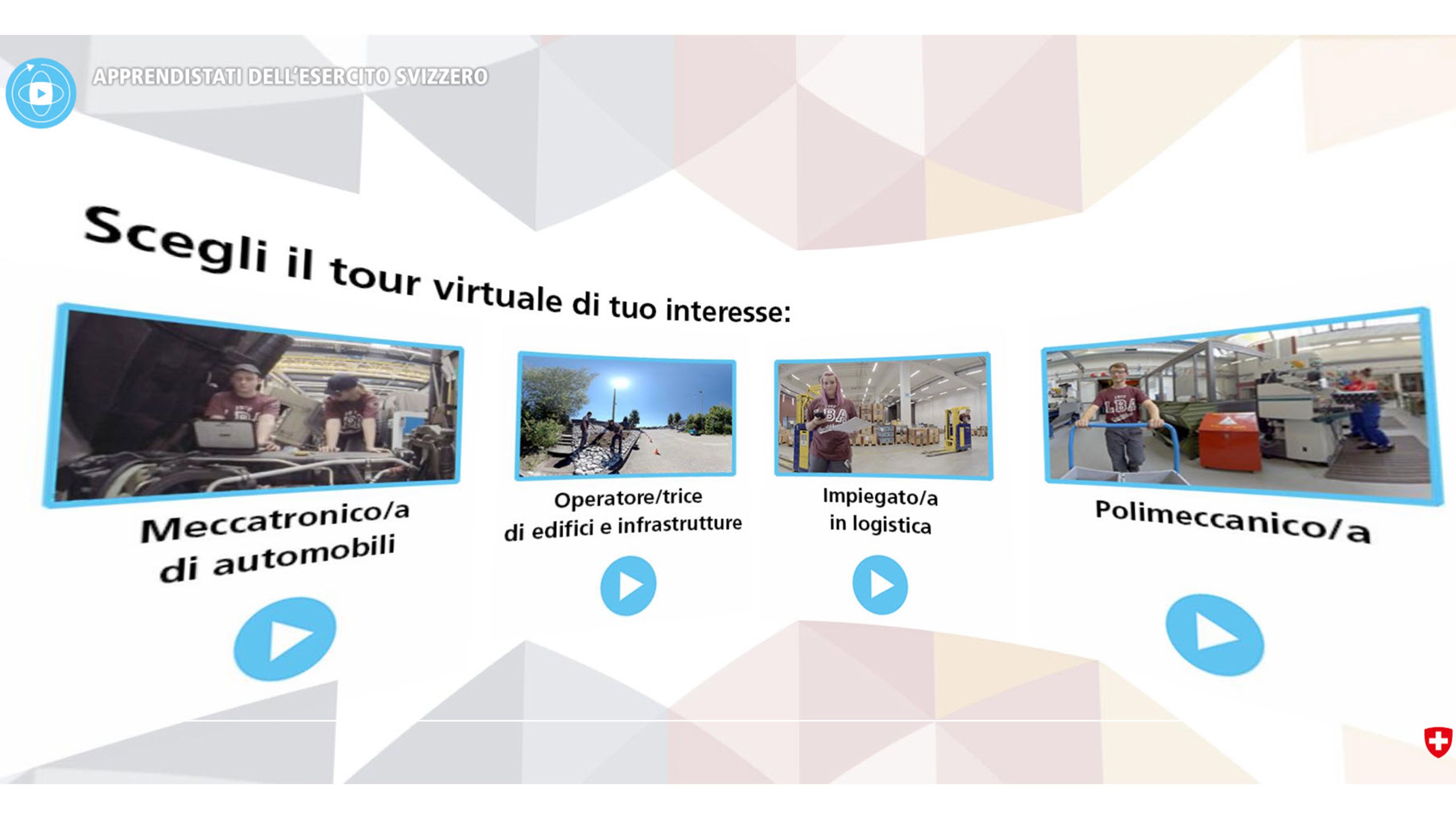 Scopri direttamente dagli apprendisti e dalle apprendiste, dai formatori e dalle formatrici, dai collaboratori e dalle collaboratrici in cosa consiste esattamente il tuo lavoro dei sogni oppure visita persino un intero centro logistico dell'esercito. Non esitare a contattarci per ulteriori informazioni (lehre.astab@vtg.admin.ch).