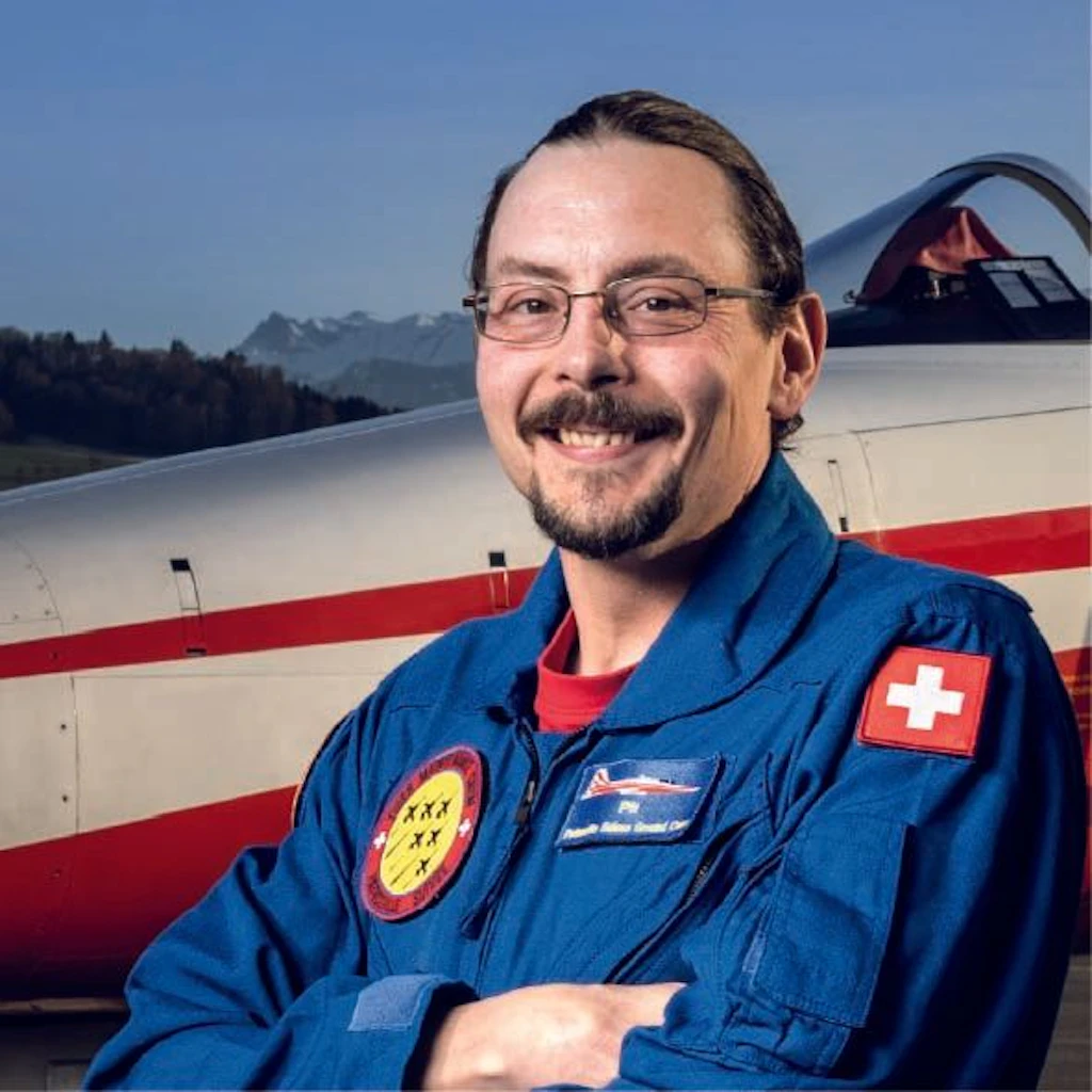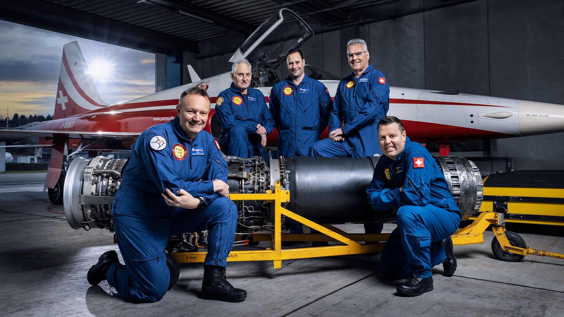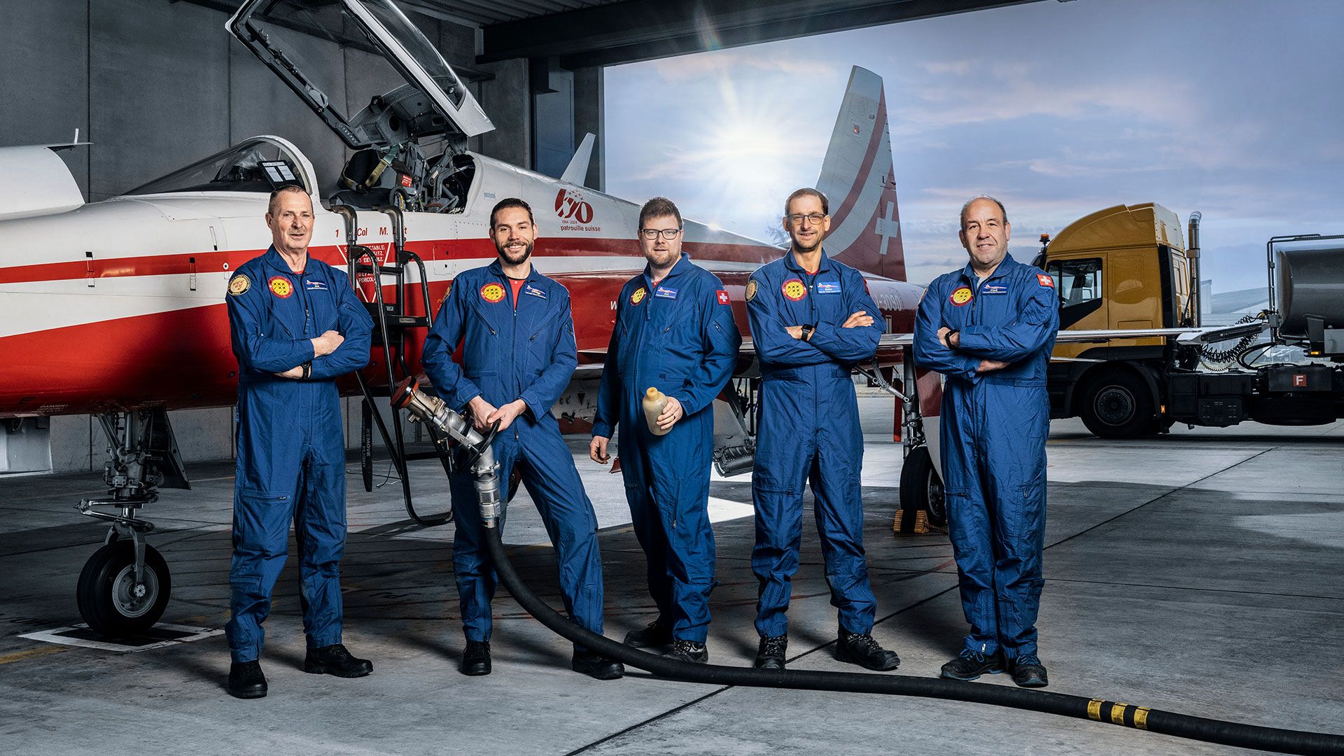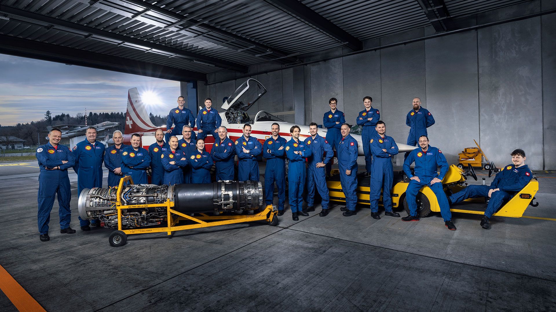 Precisione e accuratezza: Queste due qualità non caratterizzano solo le abilità di volo dei piloti della Patrouille Suisse, ma sono anche vivide dietro le quinte. È infatti il lavoro preciso e efficiente del personale a terra che consente alla Patrouille Suisse di decollare. Ogni giorno, meccanici di aerei, attrezzature e armamenti, insieme agli avionici della squadra di riparazione, i capi aerei dell'operatività e i logistici responsabili del trasporto e dei veicoli, contribuiscono in modo significativo a mantenere l'operatività. Grazie alla loro vasta conoscenza specialistica, assicurano che gli aerei siano sempre consegnati ai piloti in condizioni perfette e puntuali.