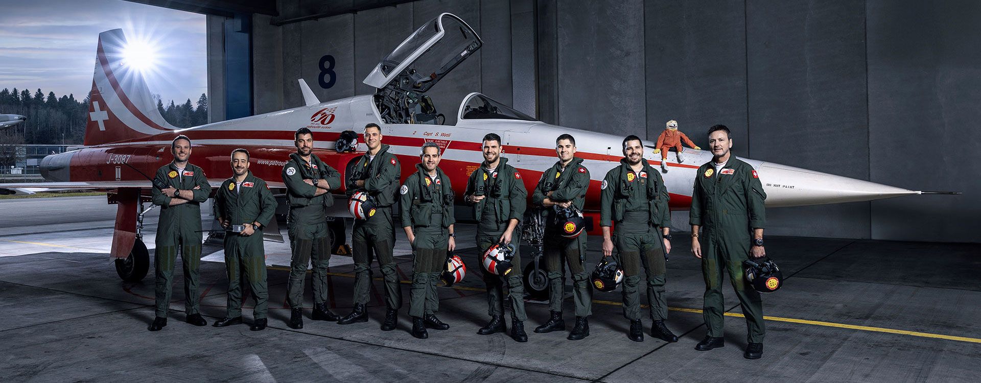 I piloti della Patrouille Suisse provengono originariamente da una delle squadriglie operative su F/A-18 Hornet. La loro funzione di piloti acrobatici è svolta come attività aggiuntiva al loro contributo nel mantenere la superiorità aerea e garantire il servizio di polizia aerea sopra la Svizzera. Il fatto che i piloti della Patrouille Suisse svolgano il ruolo di piloti acrobatici come attività aggiuntiva evidenzia la loro versatilità e il loro impegno nei confronti della Svizzera.