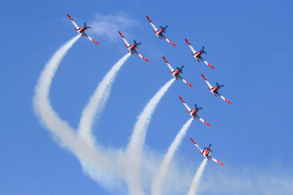 Il PC-7 TEAM si esibisce ogni anno in diverse località in Svizzera e all’estero, entusiasmando un vasto pubblico di tutte le età. Qui trovate tutte le date delle esibizioni del TEAM.