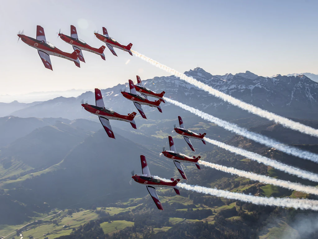 Con le sue esibizioni dinamiche, eleganti e precise il PC-7 TEAM presenta alla popolazione l'elevato livello d’istruzione e l'efficienza dell'Esercito svizzero e delle Forze aeree. Il pubblico può apprezzare come il grande impegno e la disciplina consentano padroneggiare l’estremo dinamismo dell’aviazione militare. Con rotte aeree chiare, formidabili cambi di formazioni e figure variegate, il PC-7 TEAM esegue dimostrazioni di volo a livello altamente professionistico, nel corso delle quali la sicurezza di volo e lo spirito di gruppo occupano sempre il primo posto. Ecco perché non stupisce che il TEAM, con i suoi nove aerei d'istruzione Pilatus PC-7, riesca ad entusiasmare ogni anno decine di migliaia di spettatori e goda anche a livello internazionale di un'ottima fama.