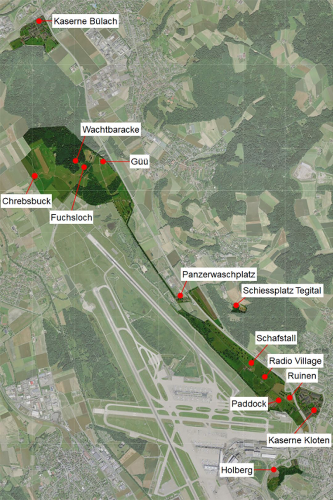 Con la costruzione dell'aeroporto internazionale di Kloten (dal 1947), l'area di addestramento militare è stata ridotta di dimensioni e l'artiglieria ha dovuto lasciare il posto alle truppe di trasmissione nel 1950. Nella terza fase di costruzione dell'aeroporto (1976), l'area di addestramento militare è stata trasformata in un'area di addestramento corazzato e resa operativa.