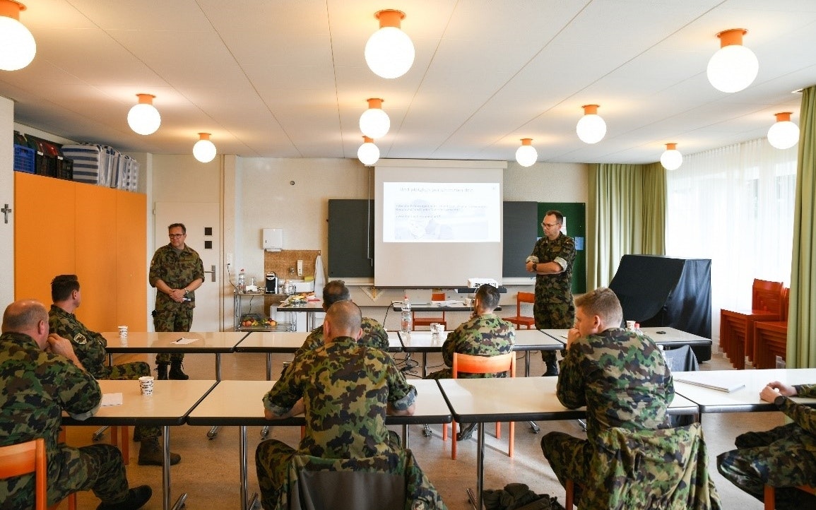 Il contrasto è impressionante: all’esterno è possibile ammirare i paesaggi dell’Appenzello, mentre all’interno si parla di morte. In occasione di un corso di una giornata a Teufen (AR), sette quadri dell’esercito stanno imparando come comunicare una notizia difficile, ad esempio un decesso, nel miglior modo possibile. Questi colloqui con le famiglie rappresentano sempre una sfida. Per poter fornire gli strumenti necessari, nella parte teorica i responsabili del corso Stefan Staub e Stefan Keilwerth affrontano con i partecipanti i colloqui difficili, che saranno successivamente oggetto di allenamento con attori professionisti. Questo nuovo corso appena lanciato è rivolto ai quadri militari, ad esempio ai comandanti di battaglione e agli aiutanti. Inoltre, è importante perché favorisce la resilienza e la leadership in situazioni difficili, nell’ottica del rafforzamento della capacità di difesa dell’esercito.