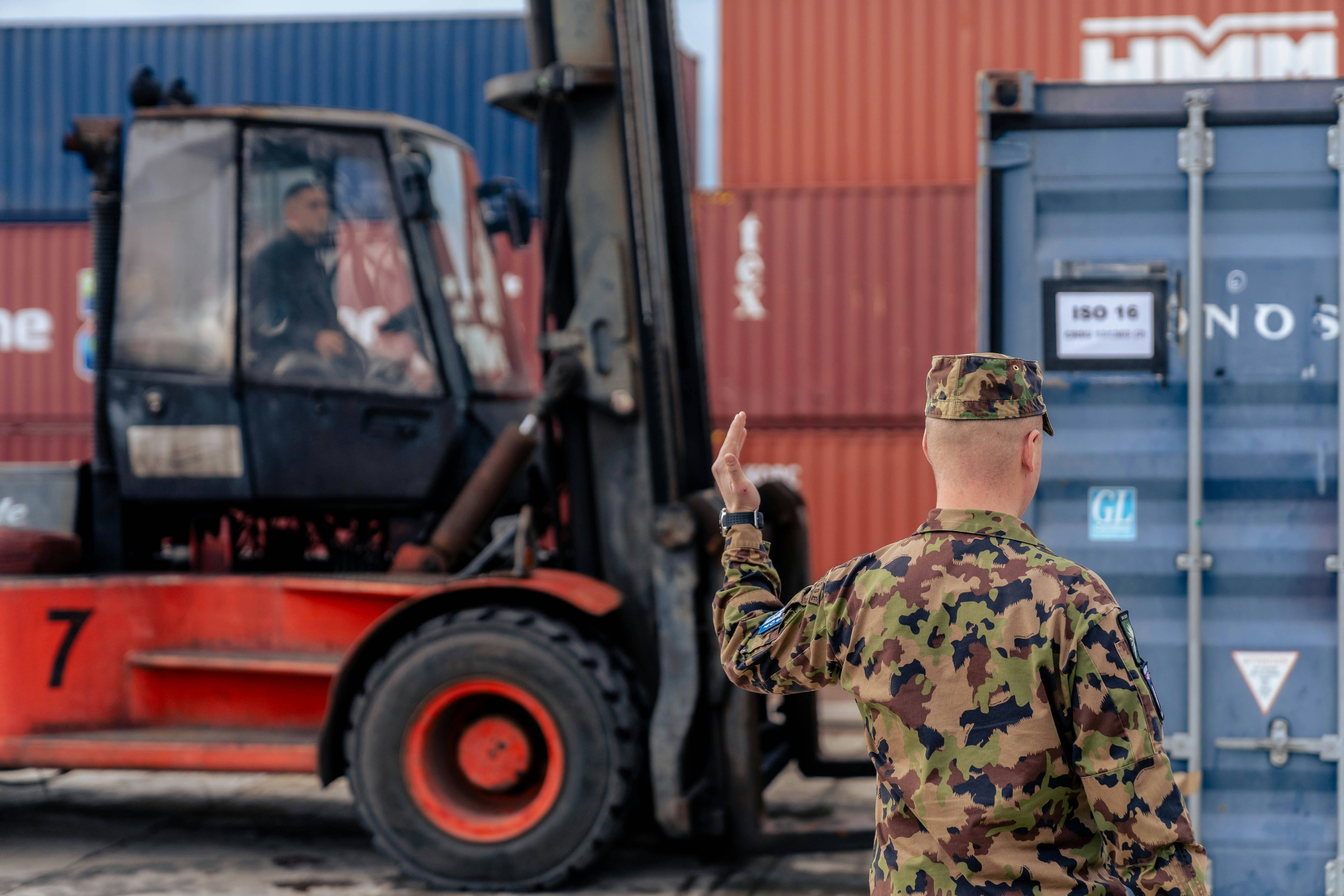Ogni mese i militari della sezione di trasporto della SWISSCOY trasportano tonnellate di merci dal Kosovo alla Svizzera e viceversa. Ma questo è lungi dall’essere il loro unico compito: ogni volta che i soldati o il materiale di altre nazioni si spostano nel settore d’impiego o escono dal settore d’impiego, gli Svizzeri organizzano i trasporti. Così è stato anche nelle scorse settimane, con l’arrivo di molte forze italiane e la partenza di altrettante truppe britanniche. Senza il supporto dei professionisti dei trasporti provenienti da Svizzera e Austria, non sarebbero possibili spostamenti di tali dimensioni.