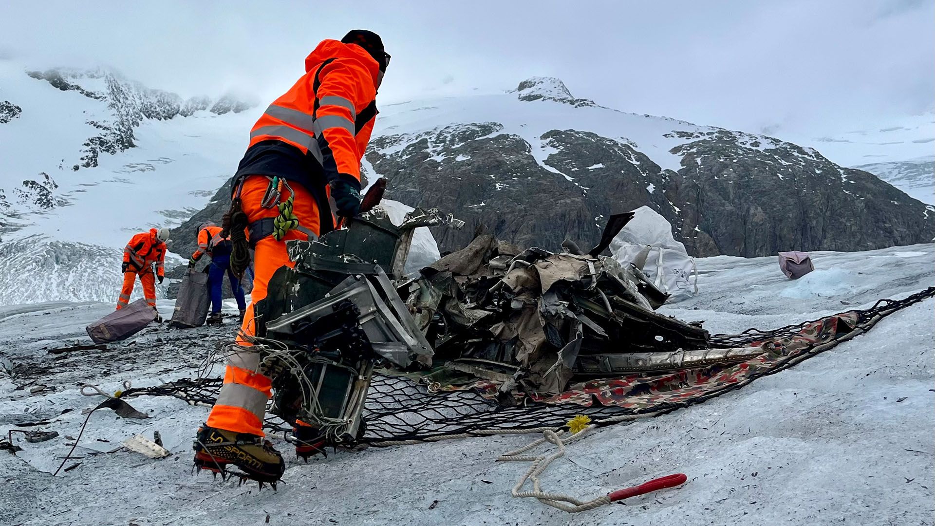 Recupero del relitto di un velivolo sul ghiacciaio del Gauli