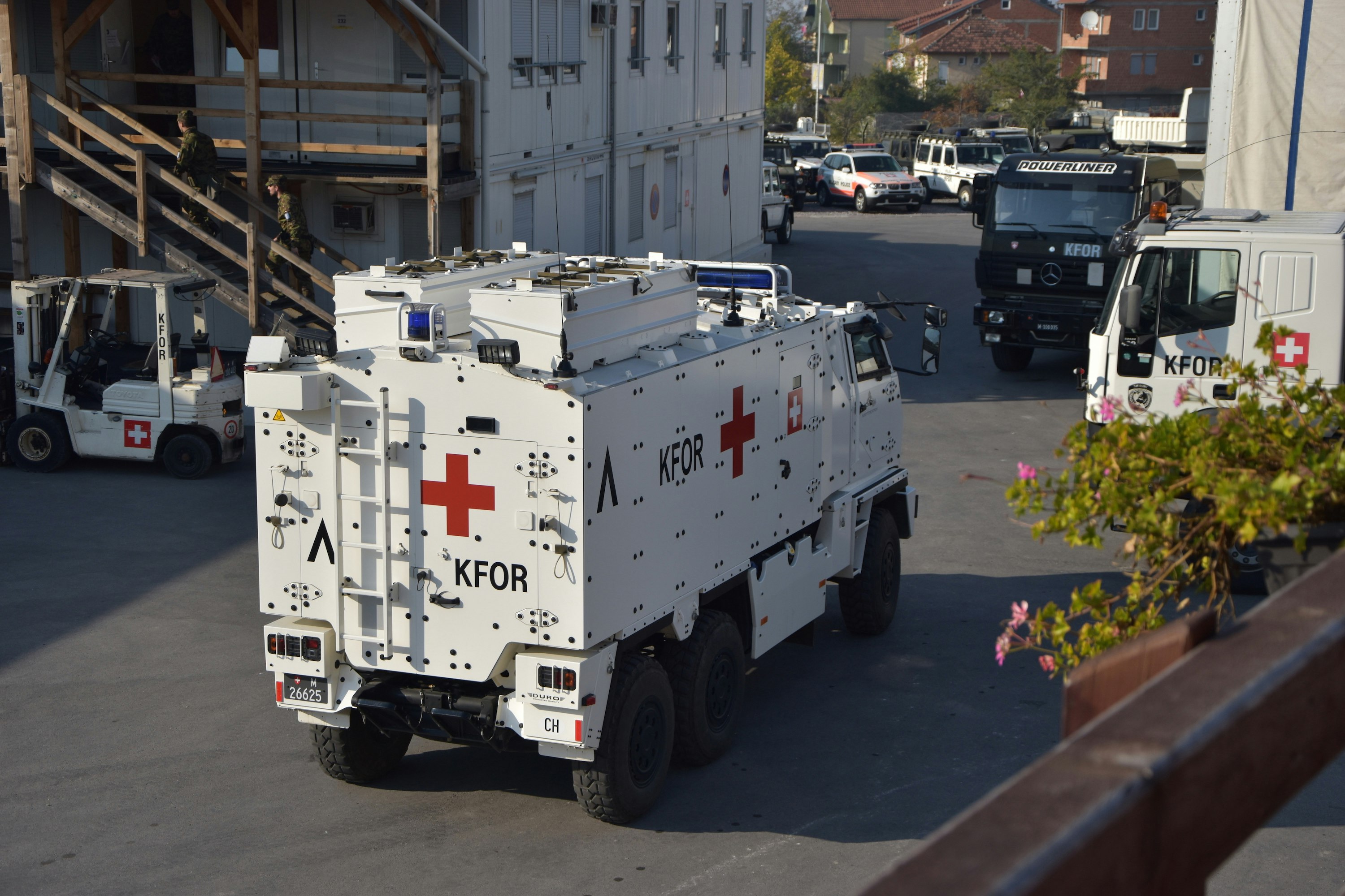 In Kosovo e in Bosnia ed Erzegovina i Peacekeeper svolgono il proprio incarico con veicoli dell’esercito svizzeri. In cooperazione con armasuisse, DOMP e rispettivamente SWISSINT definirono le differenze nelle specifiche necessarie per questi veicoli rispetto a quelli utilizzati in svizzera, affinché le soldatesse e i soldati possano usufruire delle migliori condizioni di sicurezza possibili per l’adempimento del loro incarico. Ad esempio, vengono impiegati autocarri con cabina protetta, veicoli sanitari protetti (VSANP) e veicoli di pattuglia protetti. Determinate specifiche rappresentavano per tutti i veicoli dell’esercito un valore aggiunto e vennero perciò prese in considerazione dal armasuisse al momento dell’acquisto di nuovi veicoli.