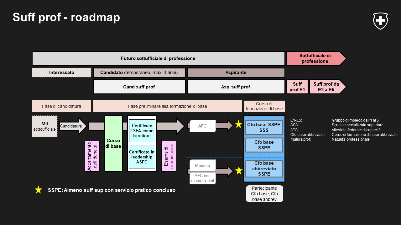 Corsi di formazione di base della durata di 2 anni (CFB) finalizzati al conseguimento del diploma federale di Sottufficiale di professione diplomata/o SSS.