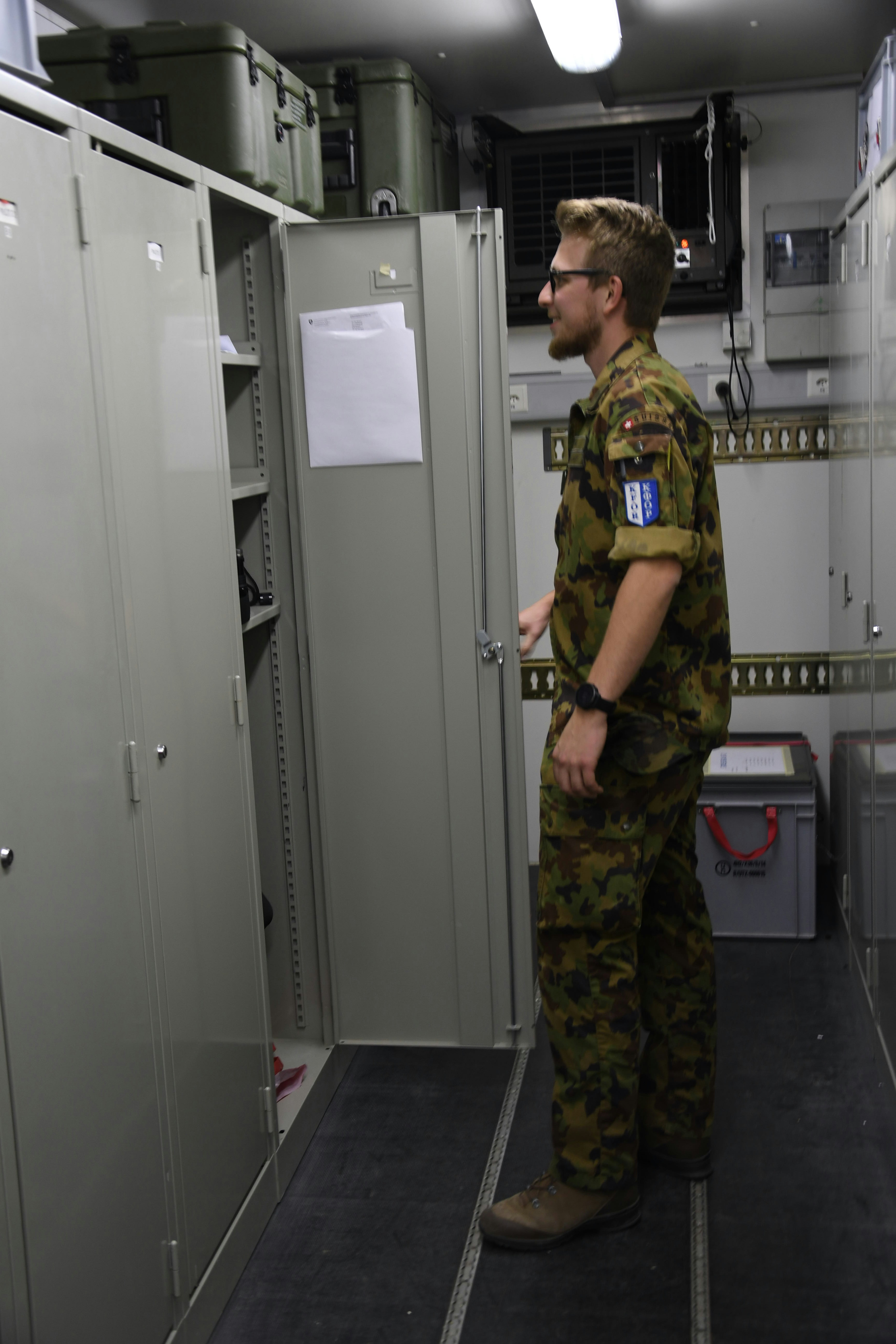 Durante il corso d’istruzione Jules Dufour era inoltre responsabile degli aspetti legati all’andamento del servizio, al materiale e addirittura all’infrastruttura informatica per l’intero contingente e oltre a questo doveva seguire e superare anche lui il corso d’istruzione. Qui nel CNS i compiti sono invece ripartiti su più persone. «Se si tratta per esempio di risolvere un problema con l’infrastruttura si può far capo a un gruppo infrastruttura composto di specialisti del ramo, mentre le nostre esigenze nel campo dell’informatica sono prese a carico dal nostro sostituto responsabile dell’informatica che ha la scrivania proprio qui accanto alla mia».