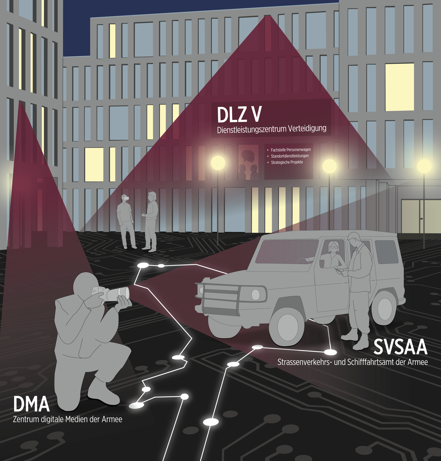 Siamo responsabili dei prodotti e dei servizi mediatici nei settori della comunicazione e dell’istruzione all’interno del Gruppo Difesa e delle altre unità amministrative del Dipartimento della difesa, della protezione della popolazione e dello sport DDPS. Forniamo inoltre consulenza e collegamenti con altri dipartimenti dell’Amministrazione federale.