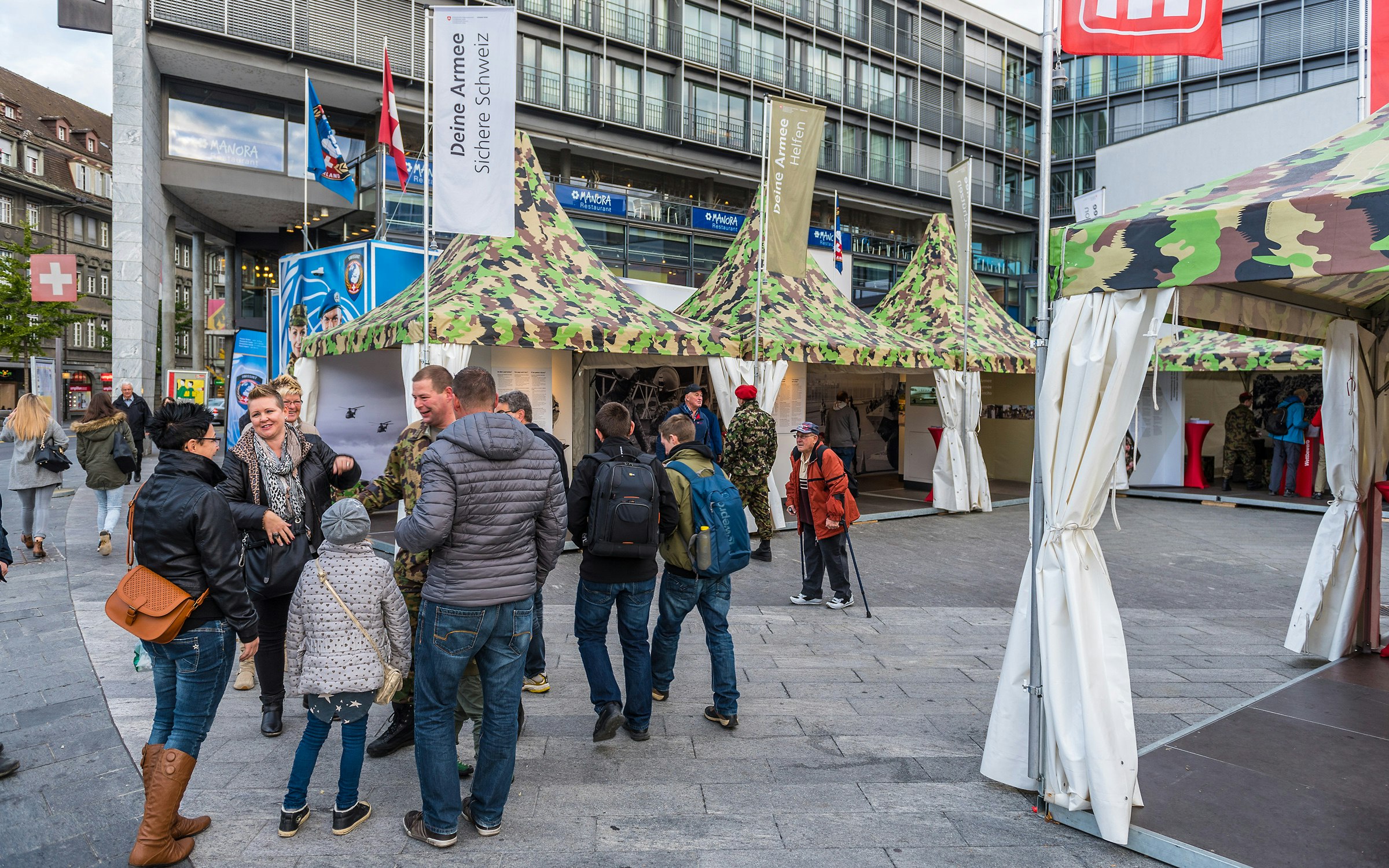 Favoriti dalla splendida meteo di sabato, la città di Thun e gli organizzatori dell’evento, hanno raccolto un grande successo, anche perché tutti sono stati della partita: la città ed i suoi servizi unitamente alle aziende di trasporto, l’esercito, i partner civili, l’economia ed i commercianti. Oltre alla presentazione delle differenti armi, curata dalle formazioni d’addestramento dei blindati e dell’artiglieria (di casa a Thun), della fanteria, del genio e del salvataggio, dell’aiuto alla condotta, della difesa contra-aerea e della logistica, anche tutti i centri di competenza dell’esercito si presentavano al pubblico. Fra questi quello della musica militare che sul palco della Rathhausplatz ha inscenato diversi concerti, fra cui spiccava quello serale con la star Luca Hänni.