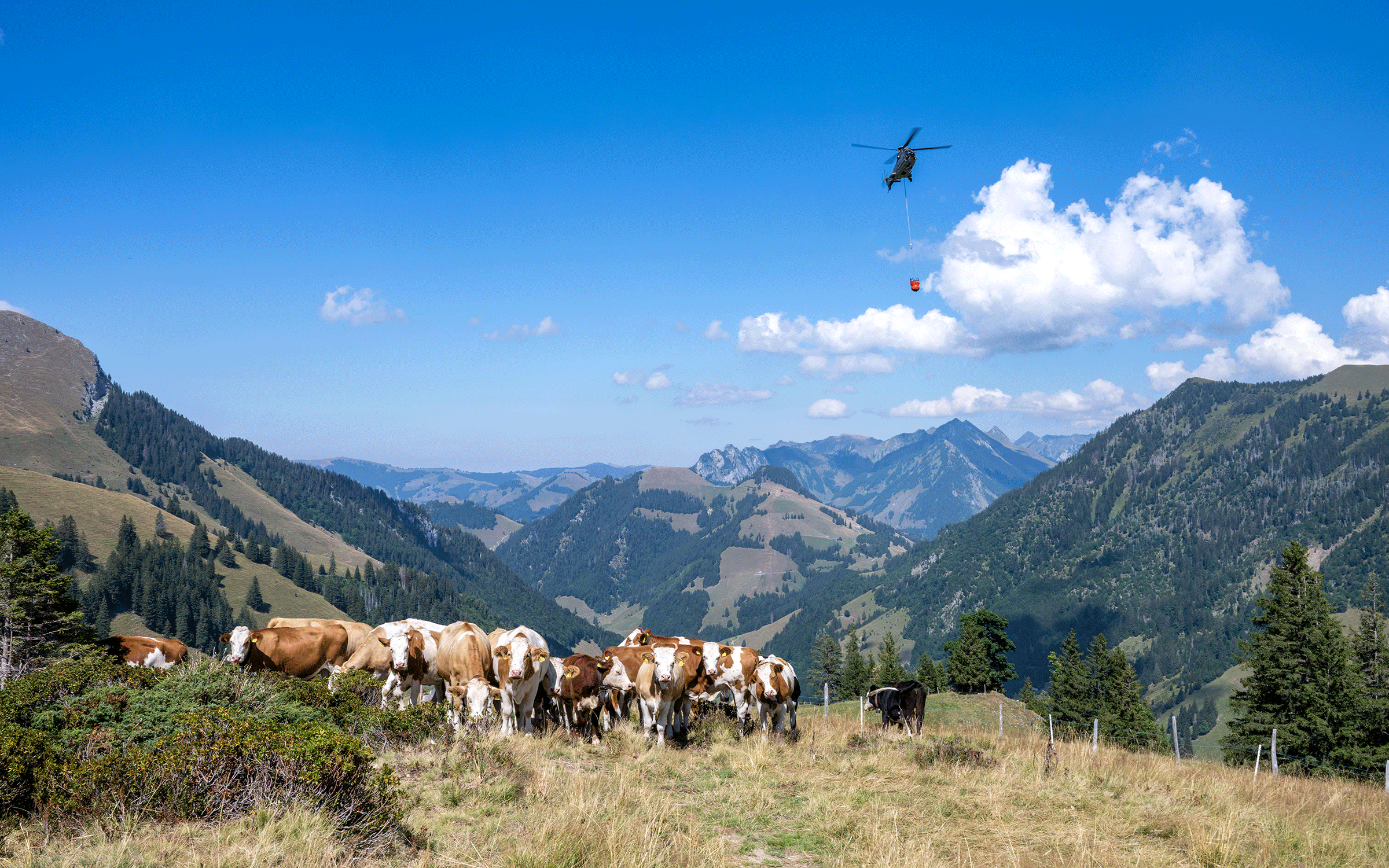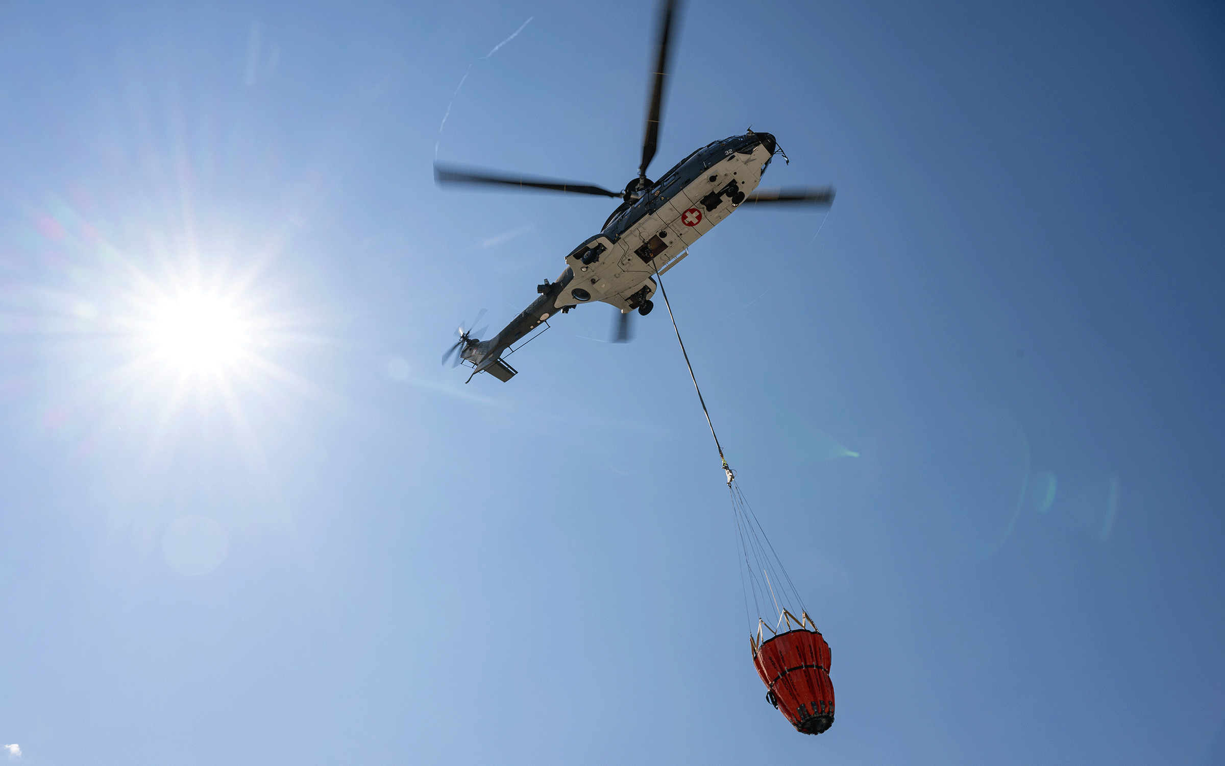 Nel quadro dell’aiuto militare in caso di catastrofe i Cantoni potevano presentare una richiesta per ricevere assistenza dall’esercito se non erano in grado di gestire la situazione con i propri mezzi, compresa la protezione civile nonché offerenti e fornitori di servizi civili. Questo è stato il caso dei pascoli alpini privi di strade di accesso, dove l’acqua può essere trasportata solo in elicottero. I trasporti d’acqua svolti dalle Forze aeree svizzere erano intesi a garantire l’approvvigionamento degli animali da reddito. L’aiuto militare in caso di catastrofe non ha riguardato attività come i ristoranti di montagna.
