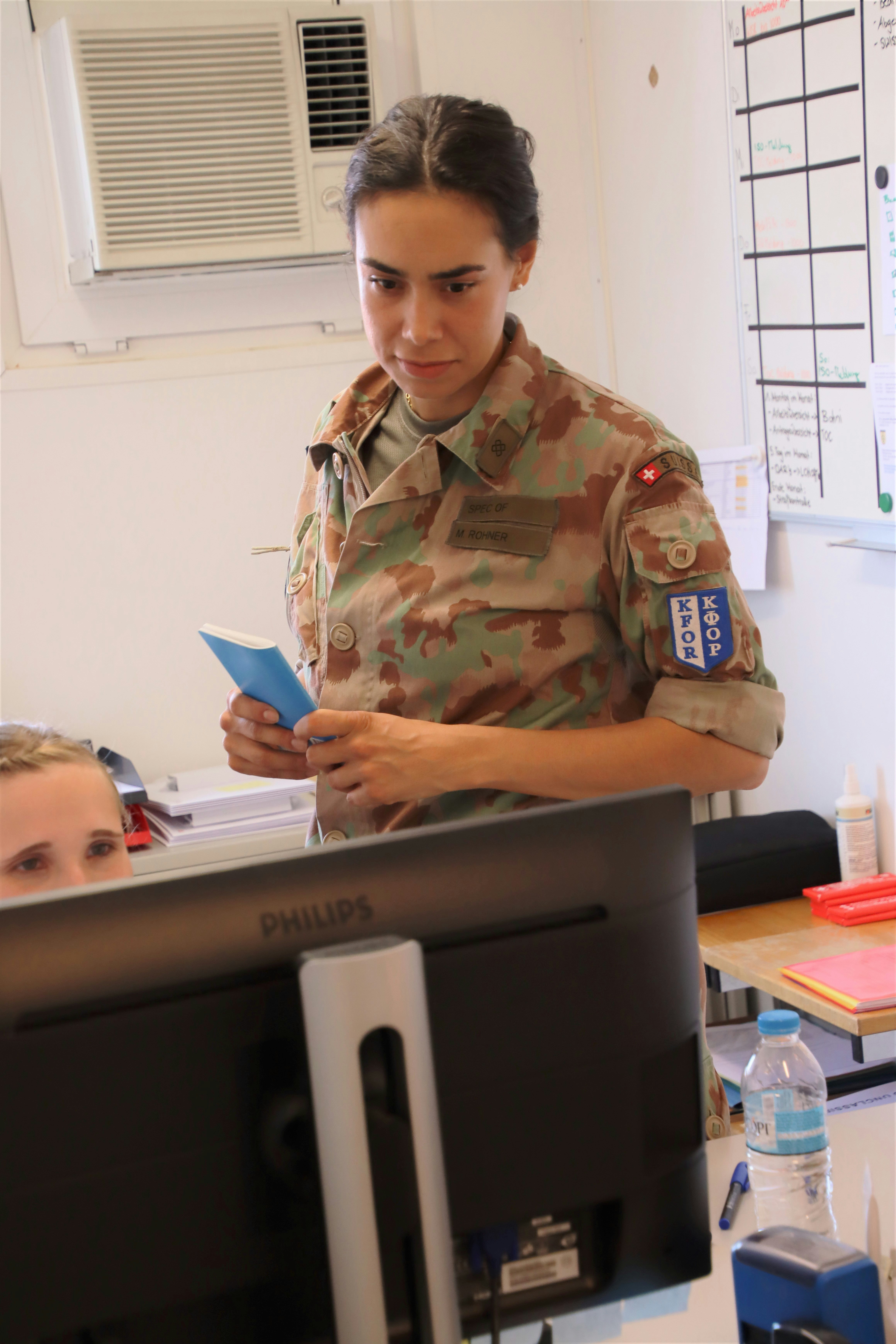 Penso che la funzione sia un’ottima integrazione. Secondo me sarebbe anche concepibile introdurre la figura del GFP in un Liaison and Monitoring Team (LMT). L’LMT si occupa principalmente di fornire un parere esterno e i team sono quotidianamente a contatto con la popolazione locale. Nel mio caso, essendo un S1, non è proprio così: passo infatti la maggior parte della giornata in ufficio a lavorare a favore del contingente. La funzione di GFP è stata introdotta per la seconda volta in seno alla SWISSCOY e le relative strutture sono ancora in fase di creazione. Sono comunque lieta di poter dare il mio contributo e, laddove possibile, ottimizzare questa realtà.
