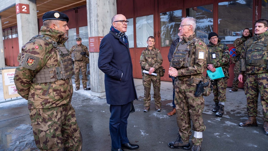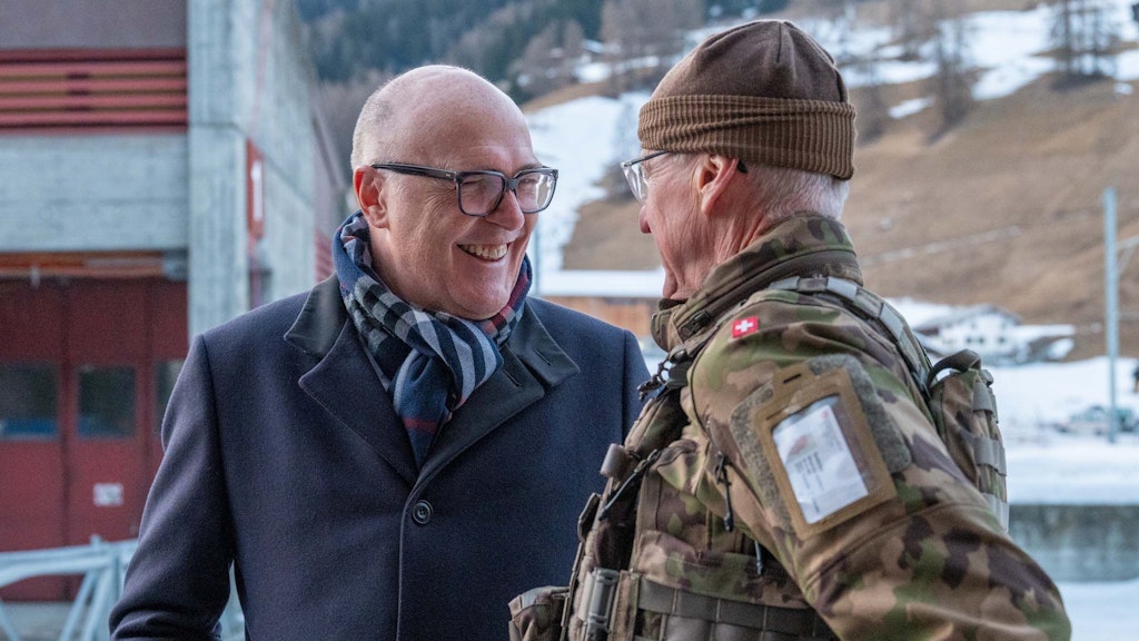 Martin Pfister, capo del DDPS, e il capo dell’esercito, Benedikt Roos, hanno fatto visita ai militari presenti al World Economic Forum 2026 a Davos, impiegati per la sicurezza dell’evento.